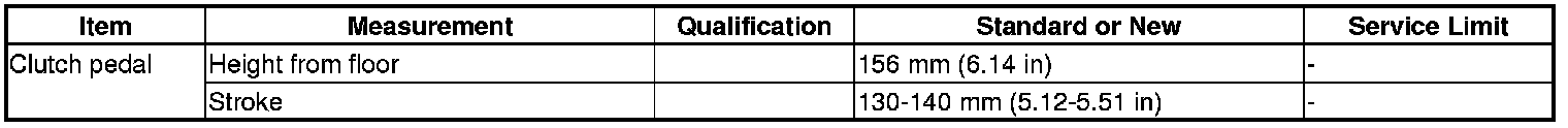 Clutch Pedal Specification(s) (M/T)
