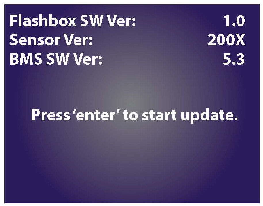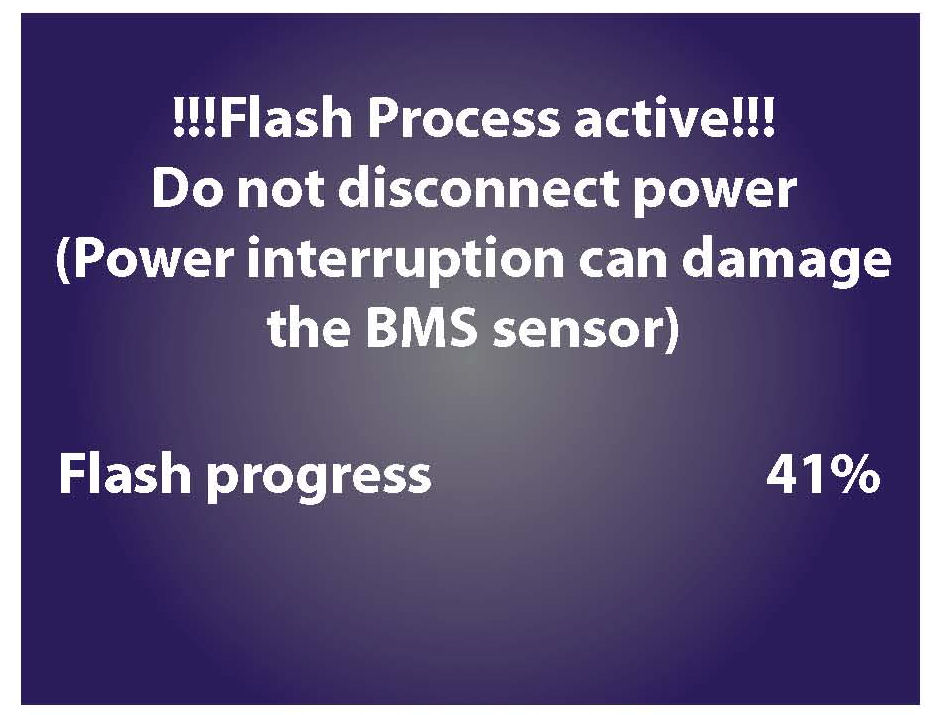 The screen below appears, indicating that the battery sensor software is being updated. Do not disconnect any of the Flash Pack connections.