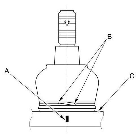 3. Paint a alignment mark (A) in the center between the both boot clip end faces (B) on the appropriate part (C).
