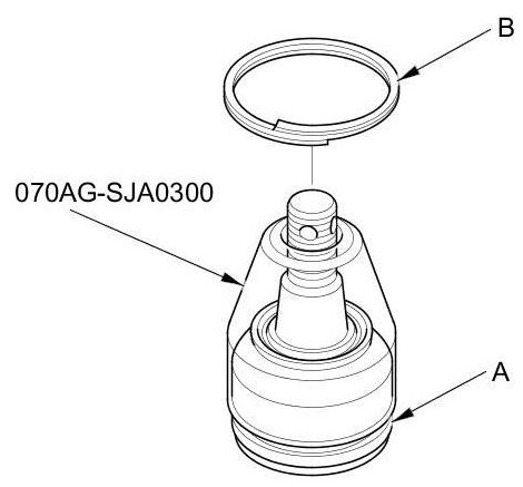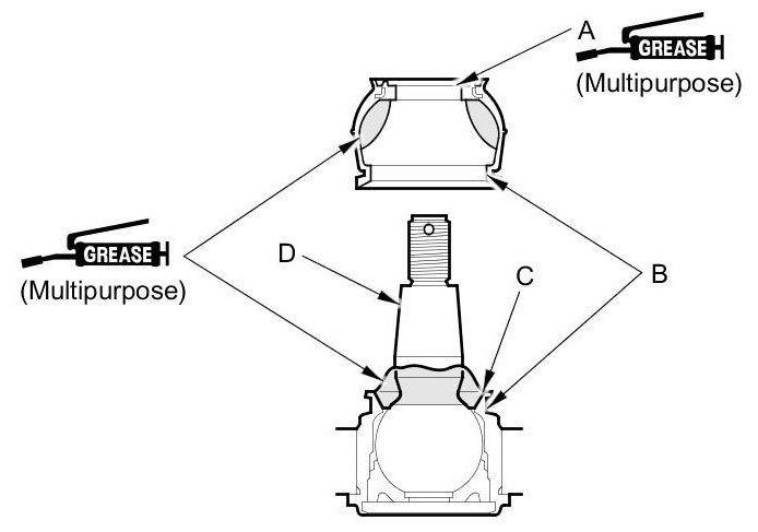 6. Pack fresh grease into the base (C). Do not let dirt or other foreign materials get into the boot.