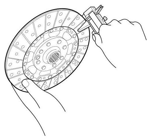 10. Measure the clutch disc thickness. If the measurement is less than the service limit, replace the clutch disc.