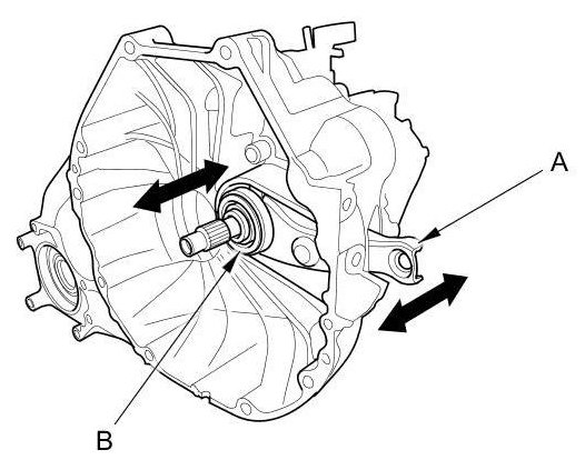 2. Remove the release fork boot (A) from the clutch housing (B).
