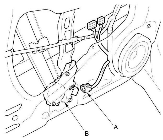 4. Disconnect the 6P connector (A) from the driver's power window motor (B).