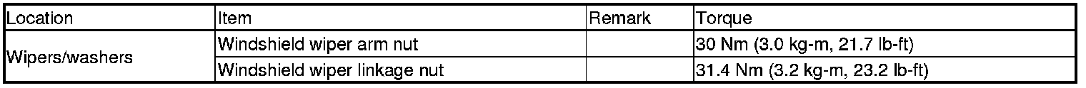 Wiper and Washer Systems: Specifications