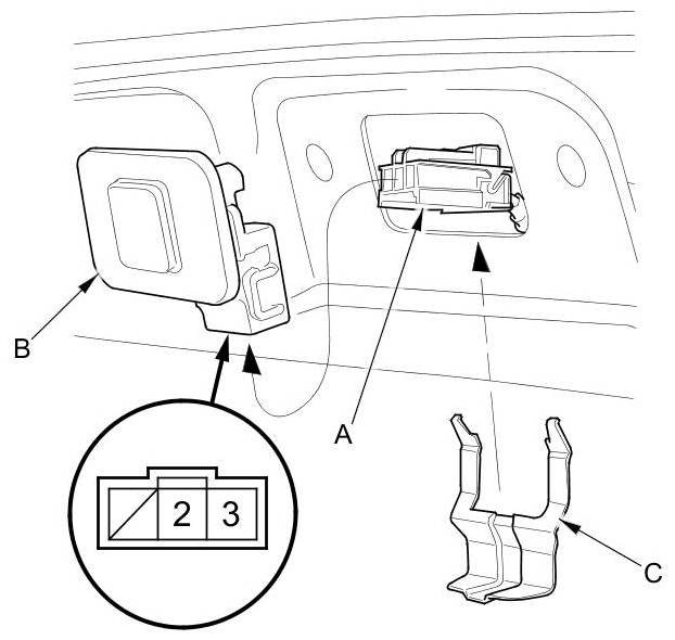 2. Disconnect the 3P connector (A) from the trunk lid outer handle switch (B).