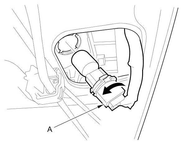 3. If the rear bulkhead cover and the rear shelf are to be removed, turn the high mount brake light socket (A) 45 ° counterclockwise to remove the socket from the trunk compartment.