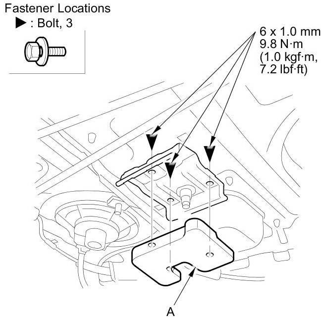 2. Remove the bolts, then remove the rear parcel shelf dynamic damper (A).