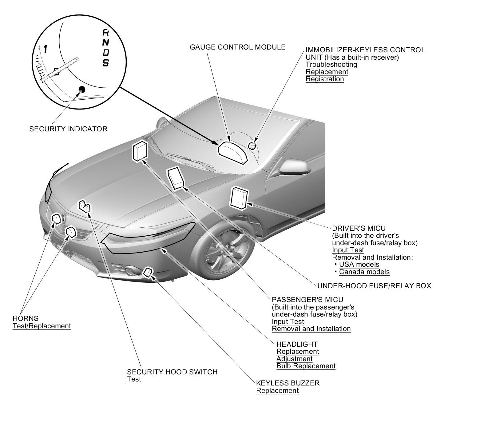 Keyless/Power Door Locks/Security System Component Location Index