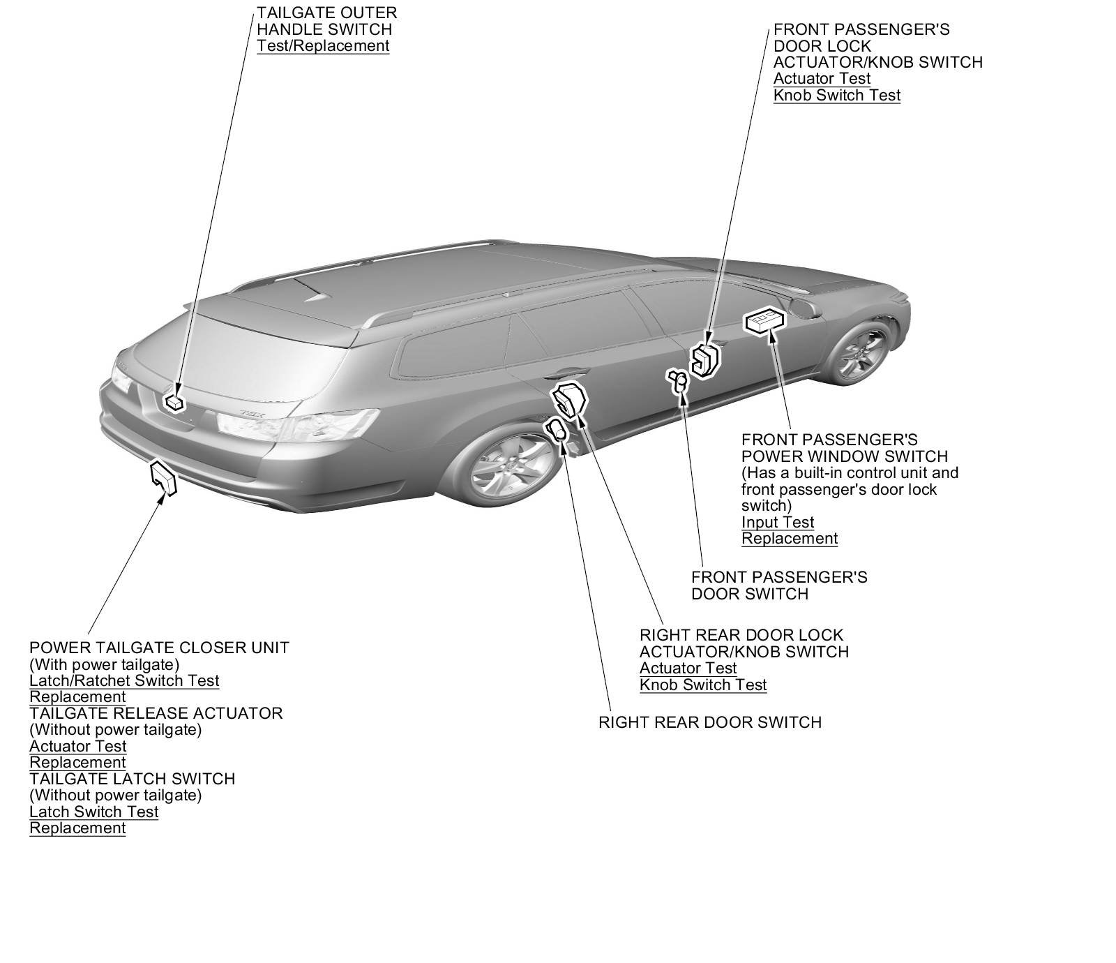 Keyless/Power Door Locks/Security System Component Location Index