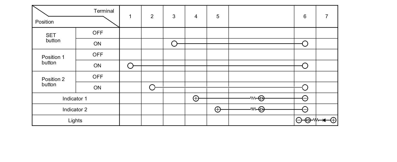 3. Check for continuity between the terminals in each switch position according to the table.