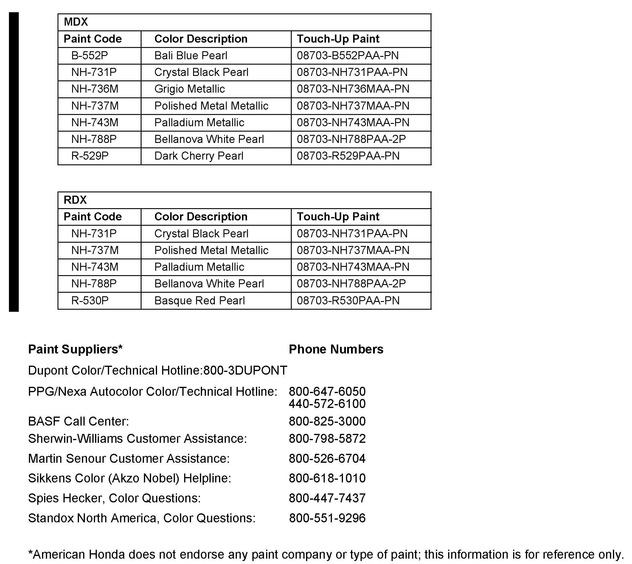 Paint formulations are determined by each paint company. For questions about formulas or color matching, call your paint supplier or one of the companies listed at the end of this service bulletin.