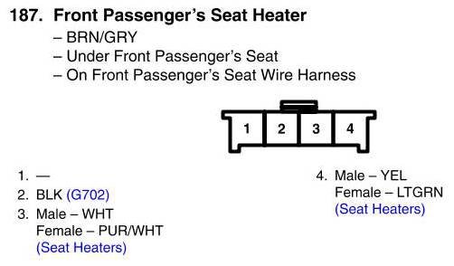View 187 - Front Passenger's Seat Heater Connector View