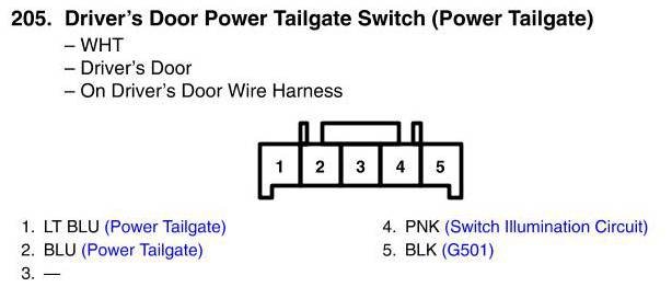 View 205 - Driver's Door Power Tailgate Switch Connector View (Power Tailgate)
