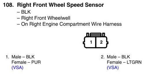 Right Front Wheel Speed Sensor Connector View