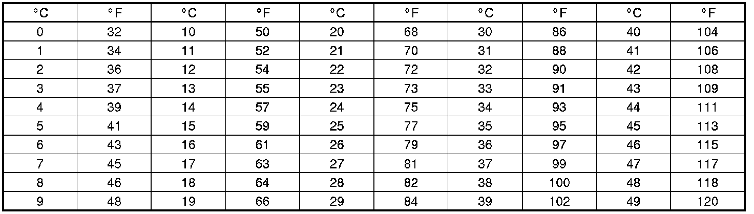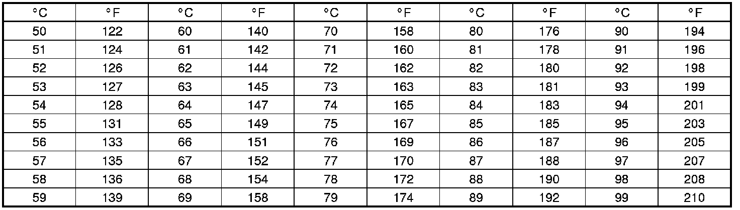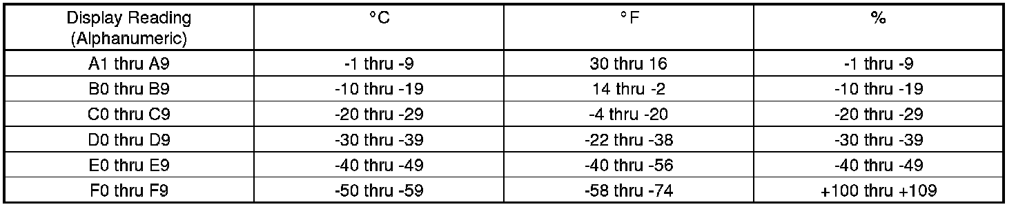 - The sensor values will be displayed in degrees Celsius (°C) or an alphanumeric code. Use the chart to convert the value to degrees Fahrenheit (°F).
