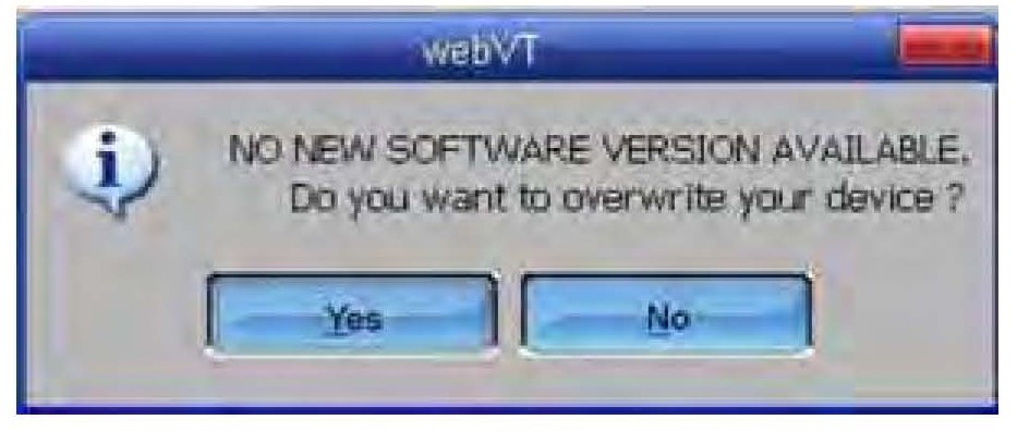 If no new software version is available, you'll see a message asking if you want to overwrite the existing software. Select No.