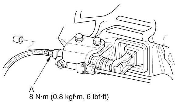 3. Make sure there is an adequate supply of fluid in the reservoir, then slowly push the clutch pedal all the way down. Before releasing the pedal, have an assistant temporarily tighten the bleeder screw. Loosen the bleeder screw, and push the clutch pedal down again. Repeat this step until no more bubbles appear at the clear tube.