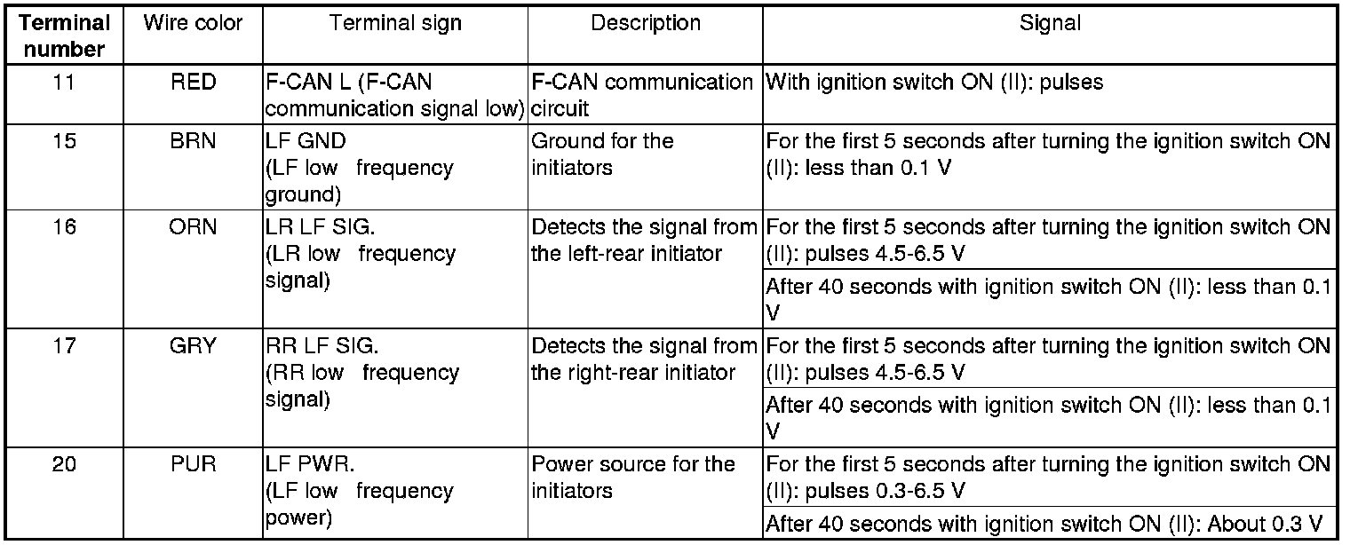 TPMS Control Unit Inputs and Outputs for 20P Connector (cont'd)