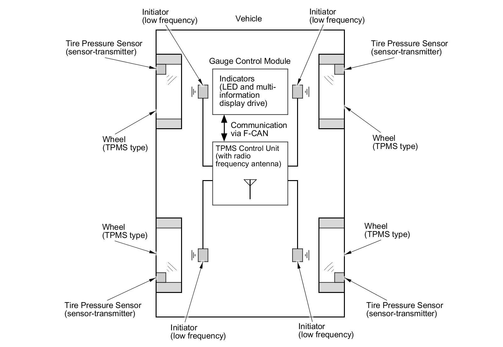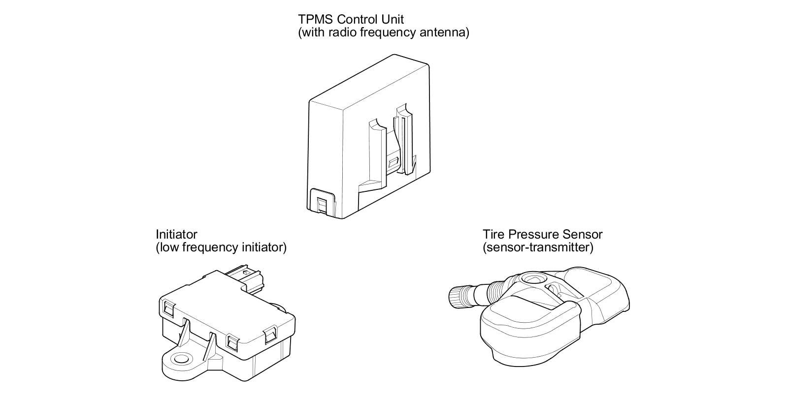 - A tire pressure sensor ID can be memorized manually or automatically. Each initiator is hard-wired to the TPMS control unit. Every time the ignition is turned to ON (II), the TPMS control unit asks each initiator to wake up the appropriate tire pressure sensor. The transmitters in the tire pressure sensors then transmit the sensor IDs, and the TPMS control unit receives, and memorizes them. The TPMS control unit then knows which sensor ID belongs to each tire location. This recurring sensor ID confirmation prevents any confusion in the system as a result of normal tire rotation.