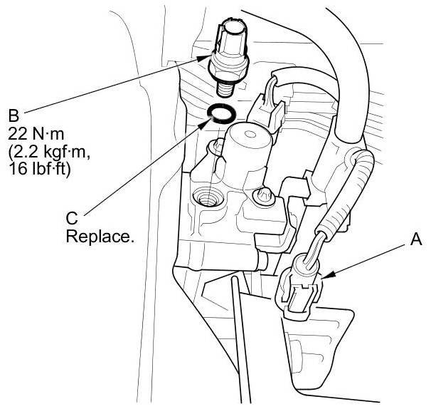3. Install the parts in the reverse order of removal with a new O-ring (C).