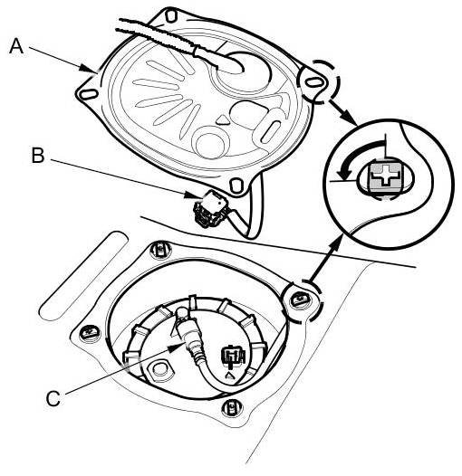 5. Disconnect the quick-connect fitting (C) from the fuel tank unit.