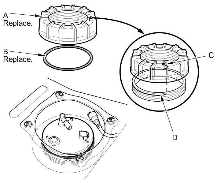 NOTE: To avoid a fuel leak, check the base gasket, visually or by hand, to make sure it is not pinched.