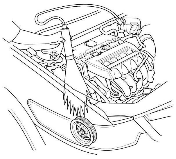 5. Start the engine. Hold the engine speed at 3,000 rpm with no load (M/T in neutral, A/T in P or N) until the radiator fan comes on, then let it idle.