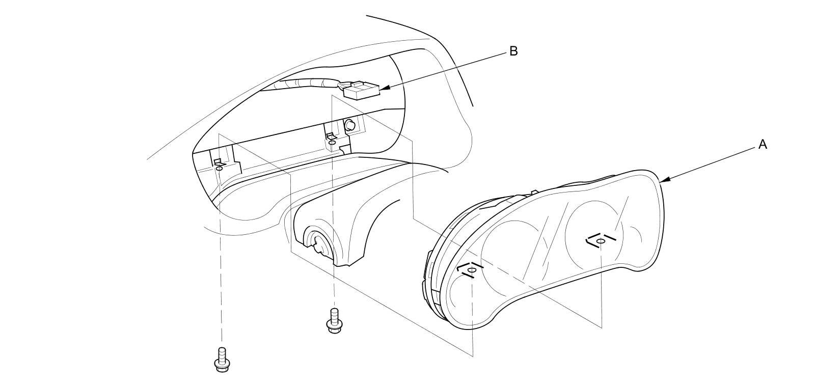 3. Remove the two bolts from under the dashboard, then pull the gauge control module (A) out carefully.