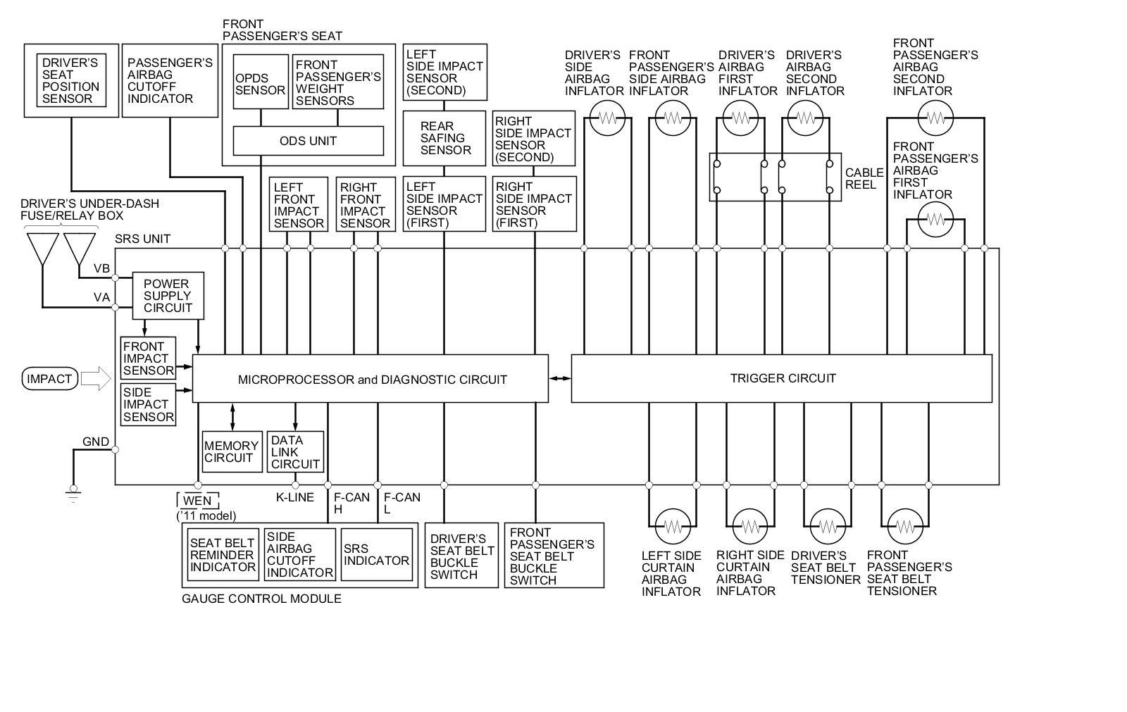 (1) The front impact sensor must activate and send electric signals to the microprocessor.