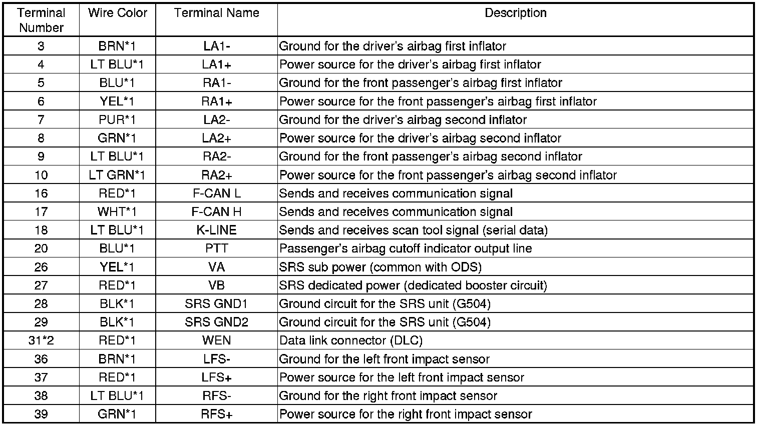 SRS Unit Inputs and Outputs at Connector A (39P)
