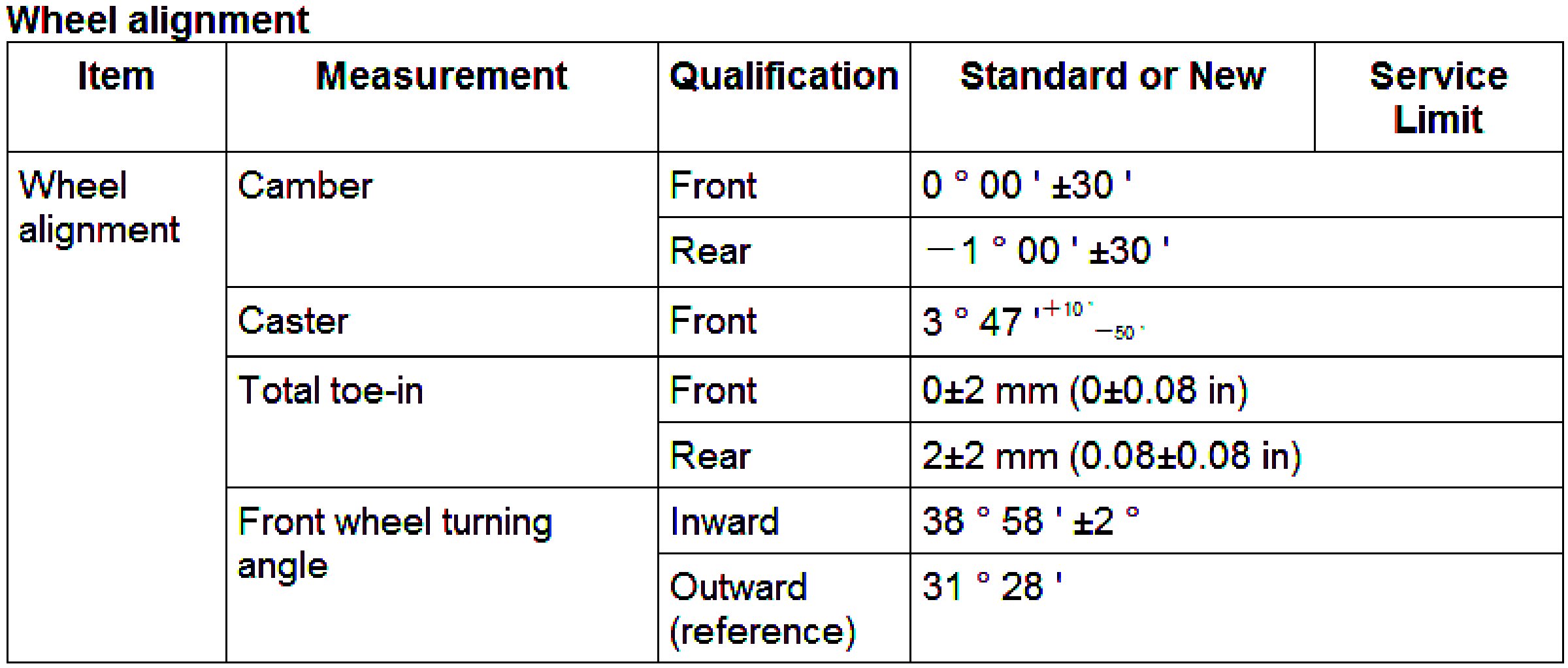 Wheel Alignment Specifications