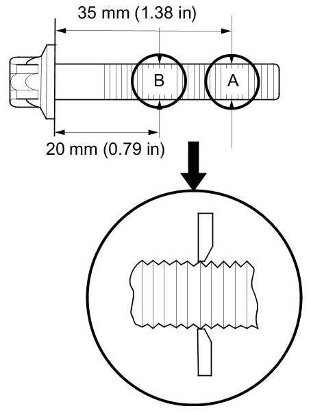 Measure the diameter of each bolt at point A and point B