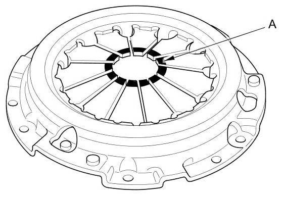 5. Inspect the fingers of the diaphragm spring (A) for wear at the release bearing contact area.