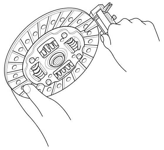 10. Measure the clutch disc thickness. If the measurement is less than the service limit, replace the clutch disc.
