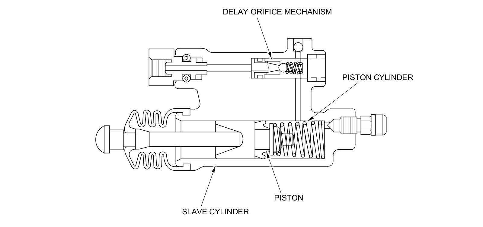 The delay orifice mechanism improves clutch operation by delaying the slave cylinder release speed when the clutch pedal is suddenly released. The delay orifice mechanism is built into the slave cylinder.