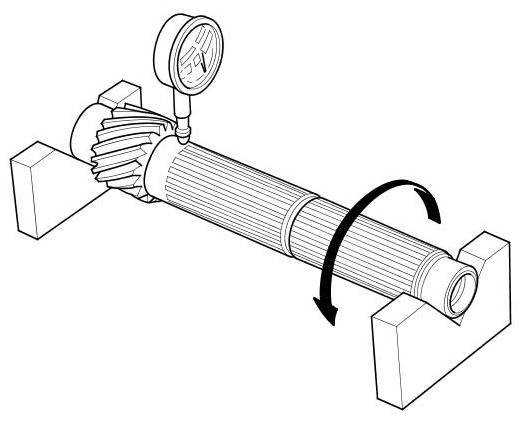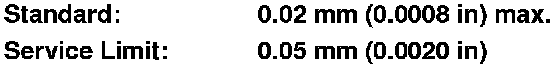 2. Inspect the runout by supporting both ends of the countershaft. Then rotate the countershaft two complete turns while measuring with a dial gauge. If the runout exceeds the service limit, replace the countershaft.