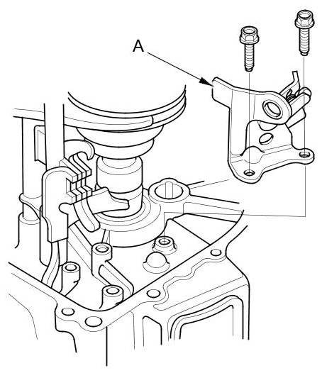 12. Remove the reverse shift fork (A).
