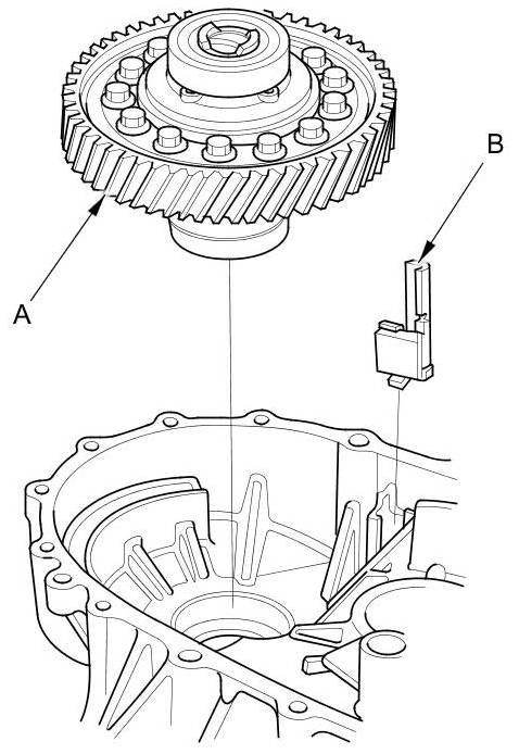 15. Remove the differential assembly (A) and the magnet (B).