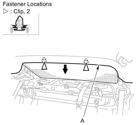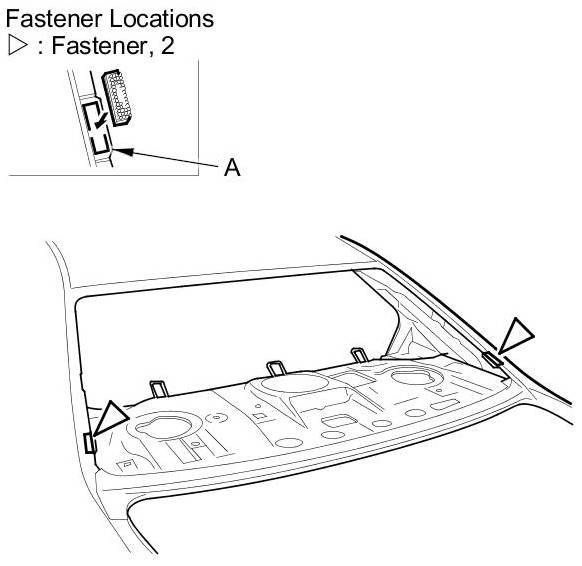 4. Pull down the rear area of the headliner (A) by detaching the clips.