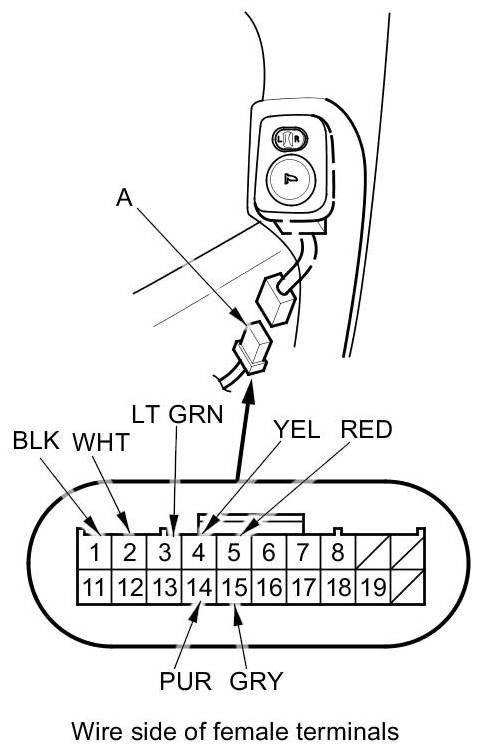 - If the left mirror does not tilt down (or does not swing left), check for an open in the GRY (or YEL) wire between the left mirror and the 20P connector. If the wire is OK, check the left mirror actuator.