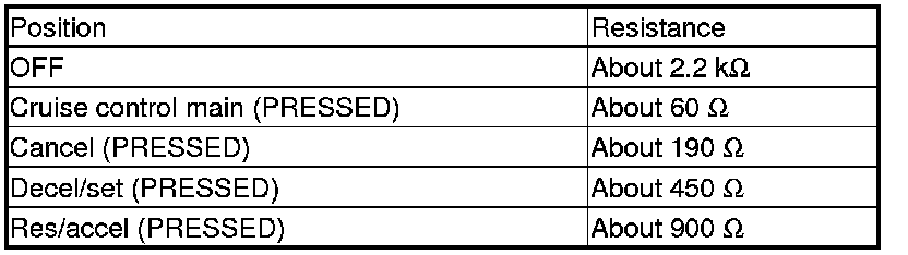 If there is no resistance in one or more positions, replace the cruise control combination switch.