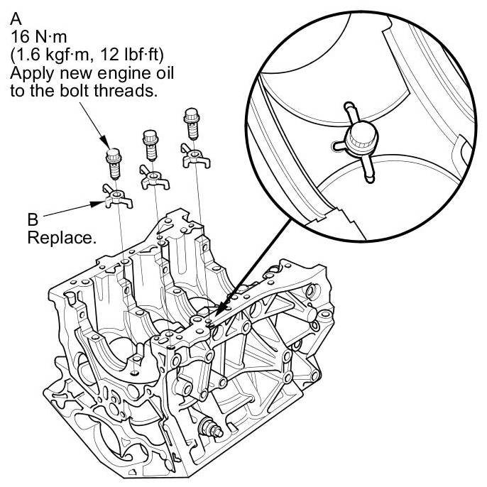 3. Carefully install the new oil jet and tighten the oil jet bolt.