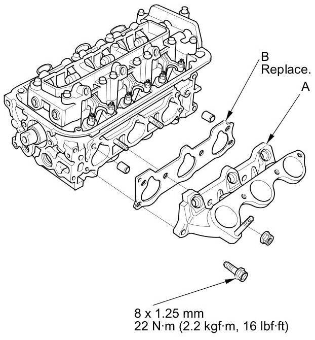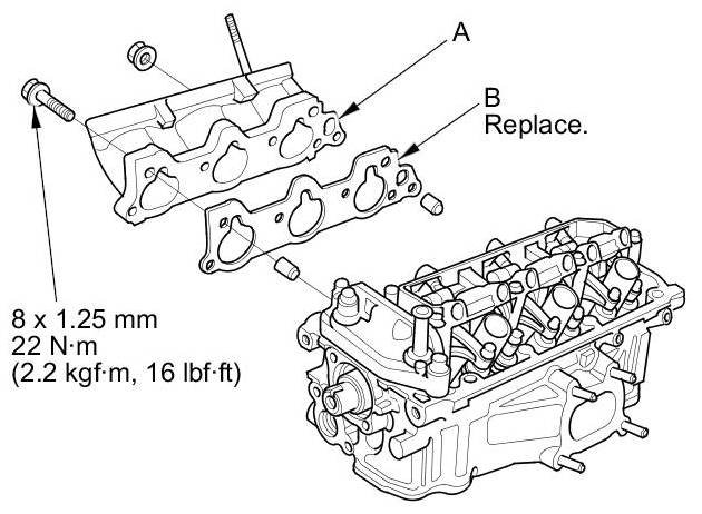 14. Install the injector base (A). Always use a new gasket (B).