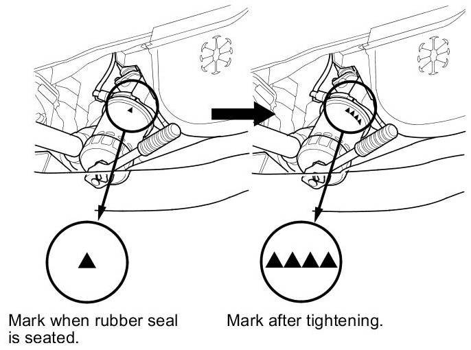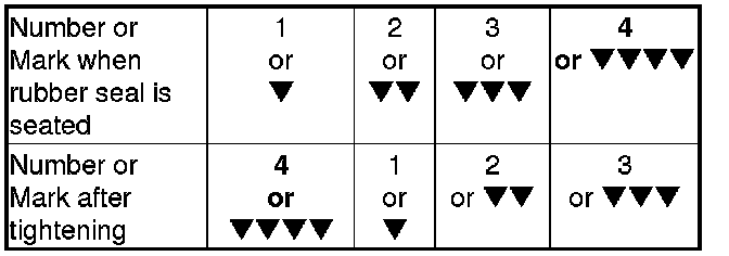 - Tighten the filter by turning it clockwise three numbers or marks from the one you noted. For example, if mark �V is at the bottom when the seal is lightly seated, tighten the filter until the mark �V�V�V�V comes around to the bottom.