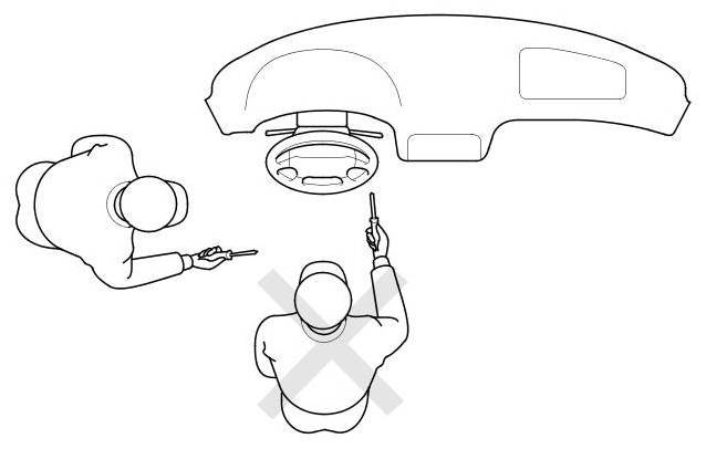 - Do not position yourself in front of the airbag during removal, inspection, or replacement.