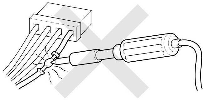 - Do not insert the pin probes of the tester or a jumper wire into the terminal port.