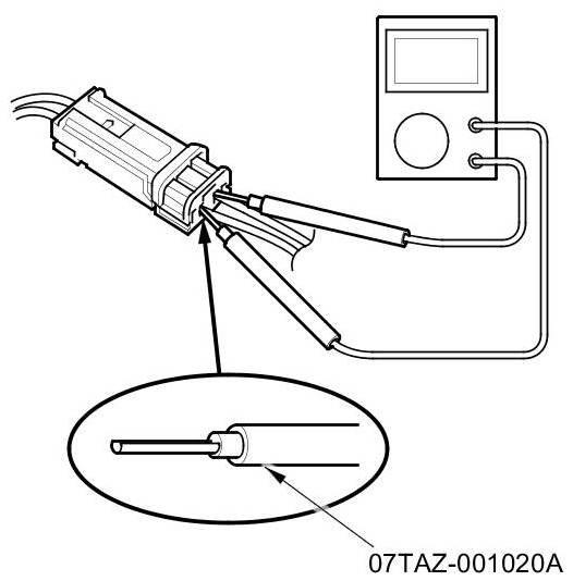 - To prevent damage to the connector terminals, do not insert the test equipment probes, paper clips, or other substitutes as they can damage the terminals. Damaged terminals cause a poor connection and an incorrect measurement.