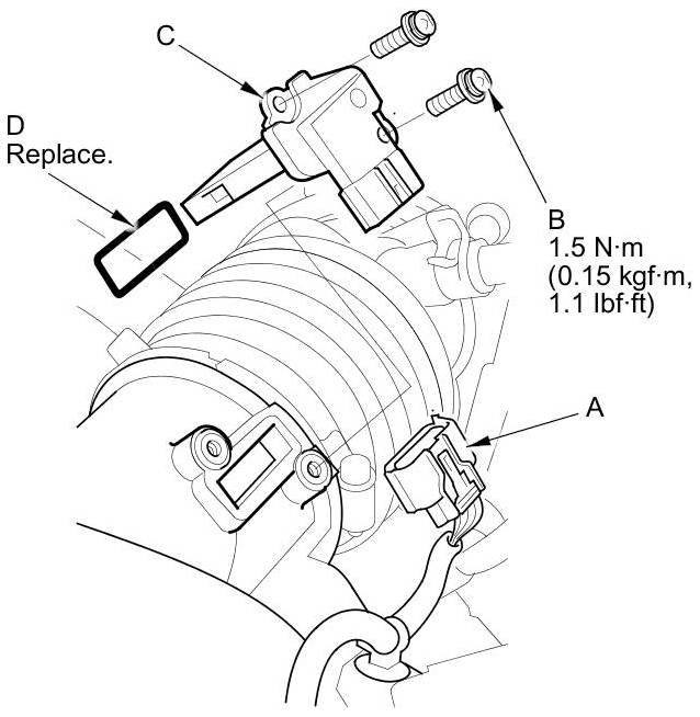 3. Remove the MAF sensor/IAT sensor (C).
