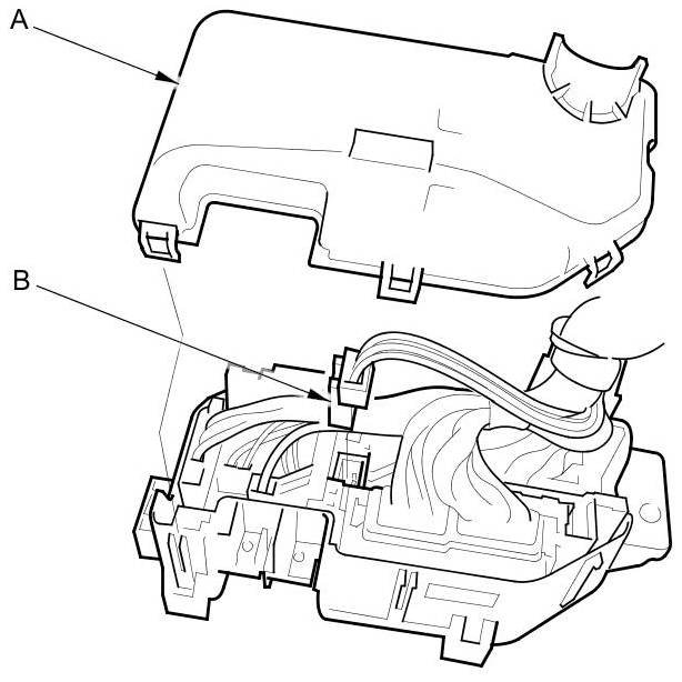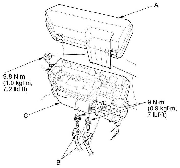 3. Remove the under-hood fuse/relay box (C) from the bracket.