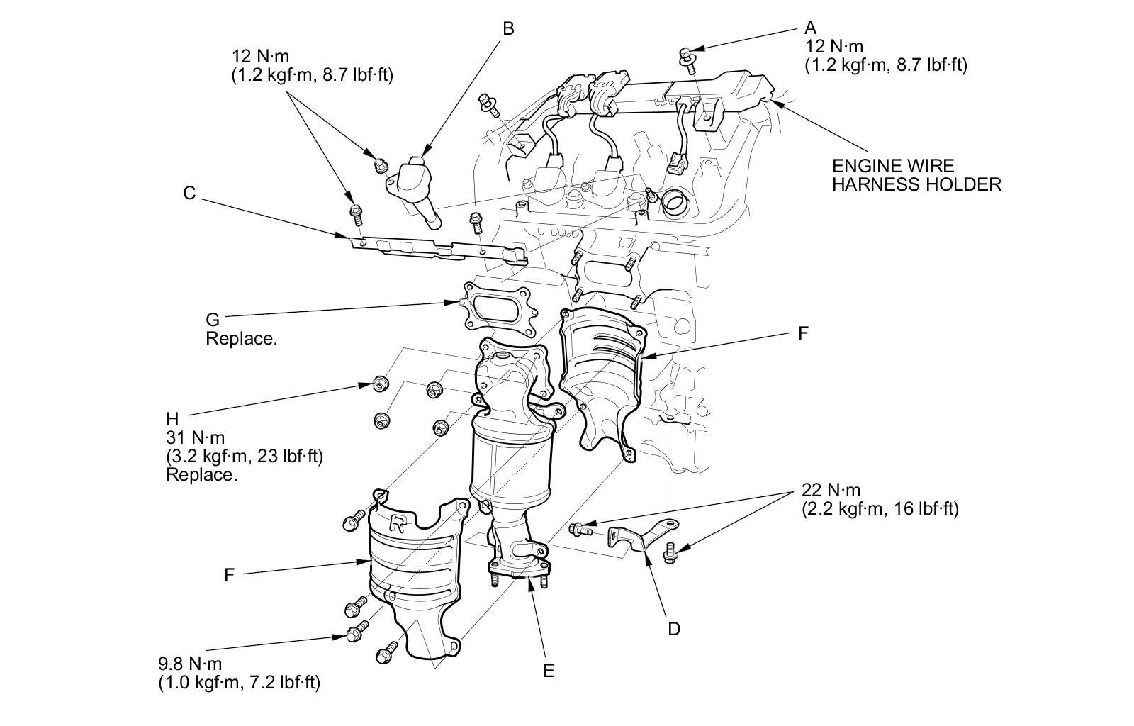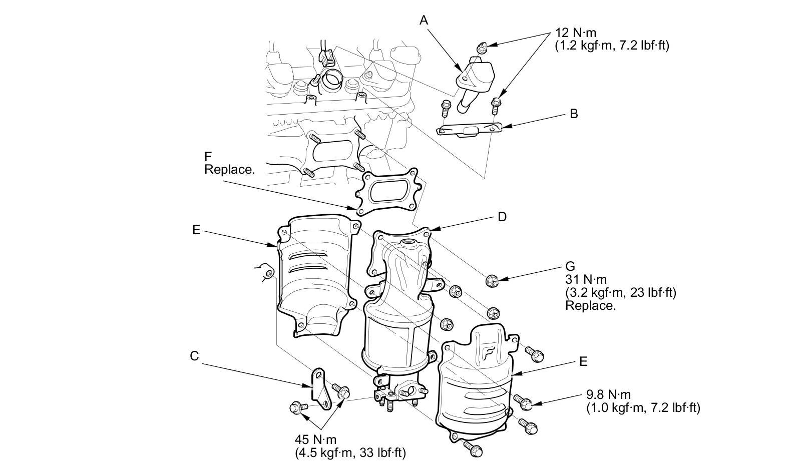 6. Remove the rear A/F sensor (Sensor 1) A/F Sensor Replacement and rear secondary HO2S (Sensor 2) Secondary HO2S Replacement.